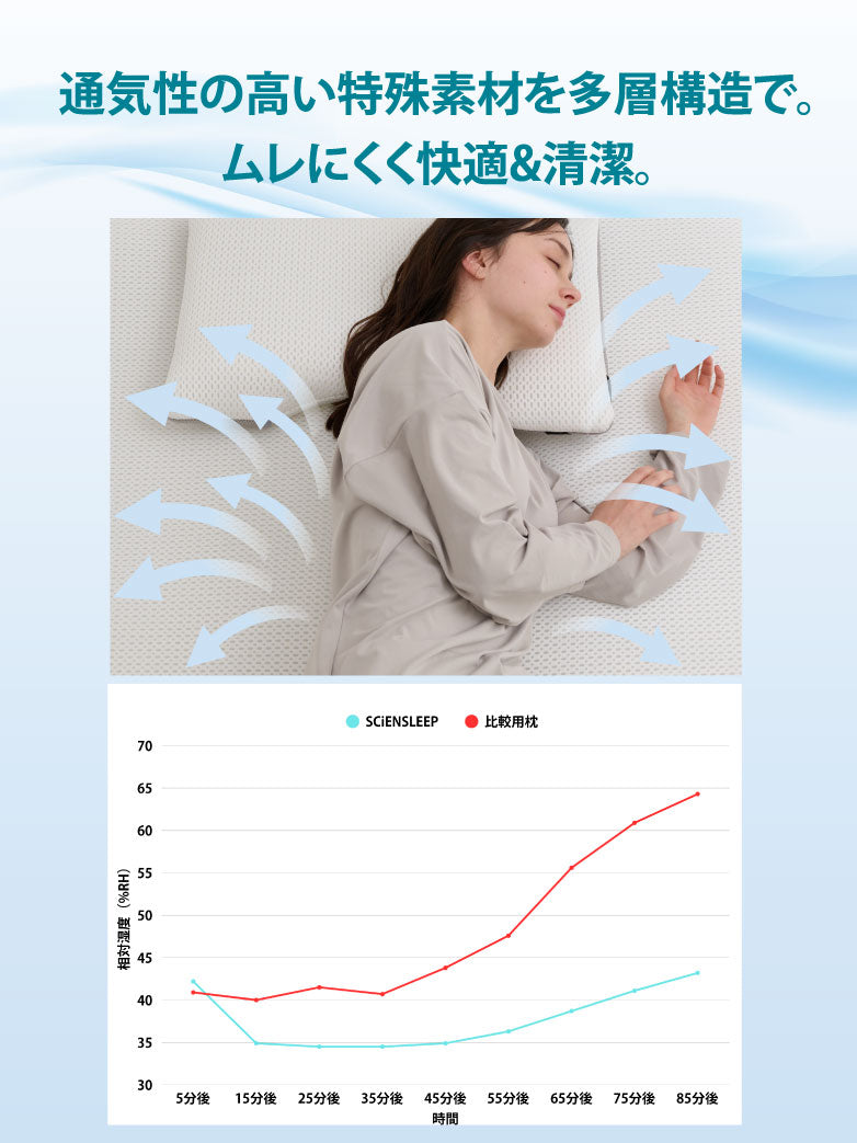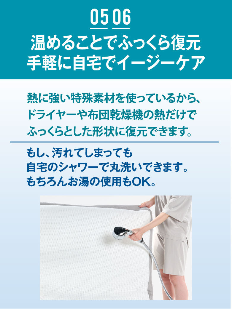 空気層構造による優れた通気性で、寝汗や湿気をためにくく、年間を通して快適にご使用いただけます。
