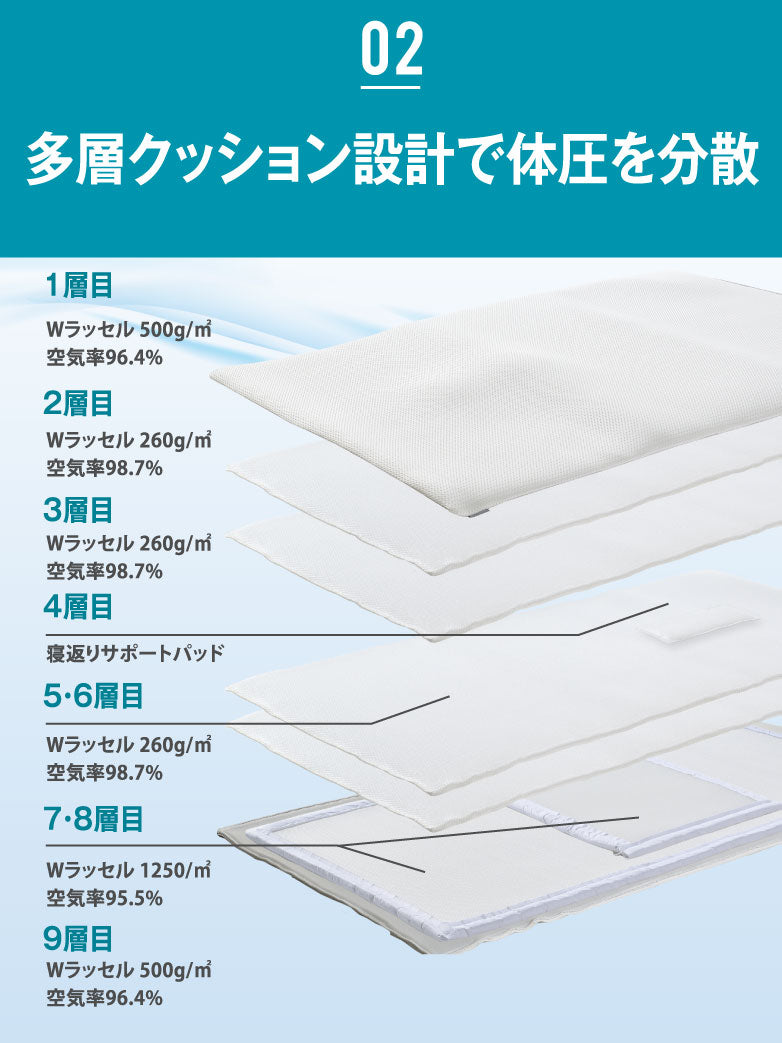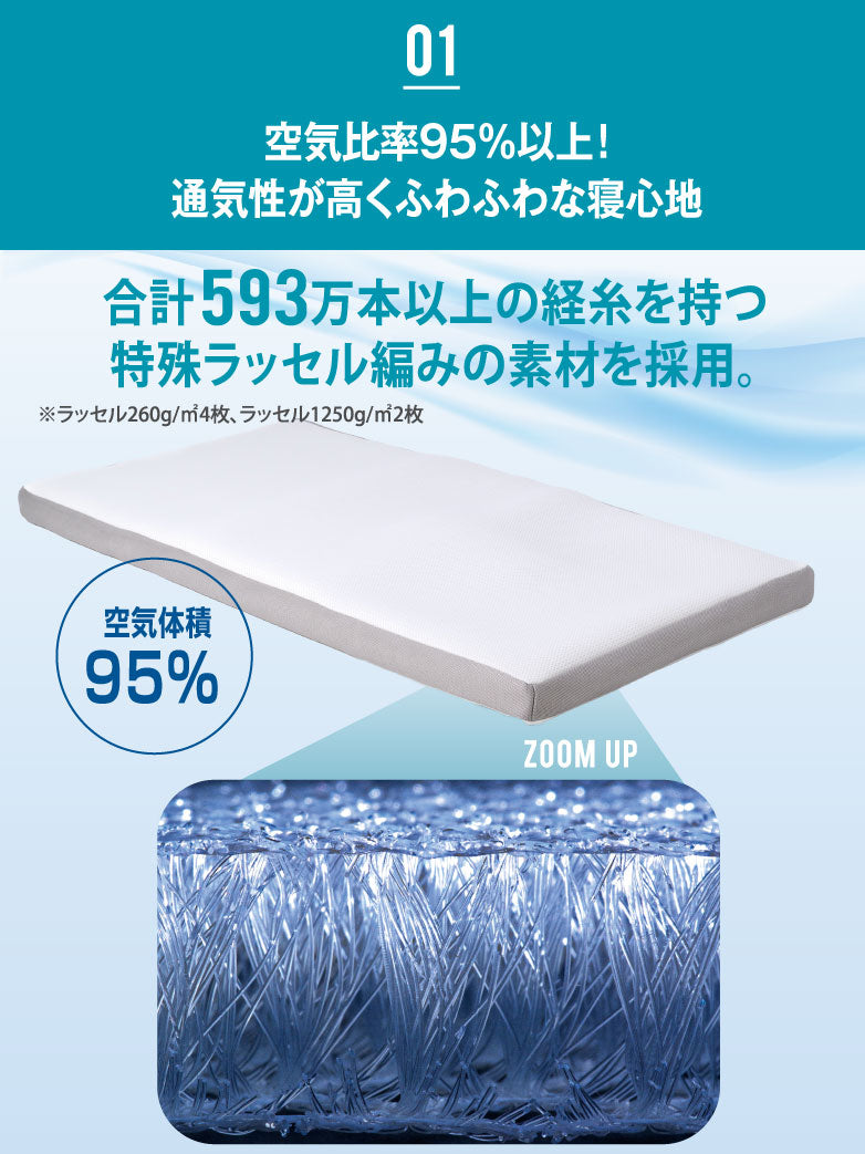 “空気体積95%”の心地よさ。多層&高さ調節&寝返りサポート 空気層で支えるマットレス
